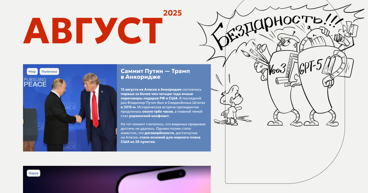15 августа на Аляске в Анкоридже состоялись первые за более чем четыре года очные переговоры лидеров РФ и США. В последний раз Владимир Путин был в Соединённых Штатах в 2015-м. Историческая встреча президентов продлилась около трёх часов, а главной темой стал украинский конфликт.