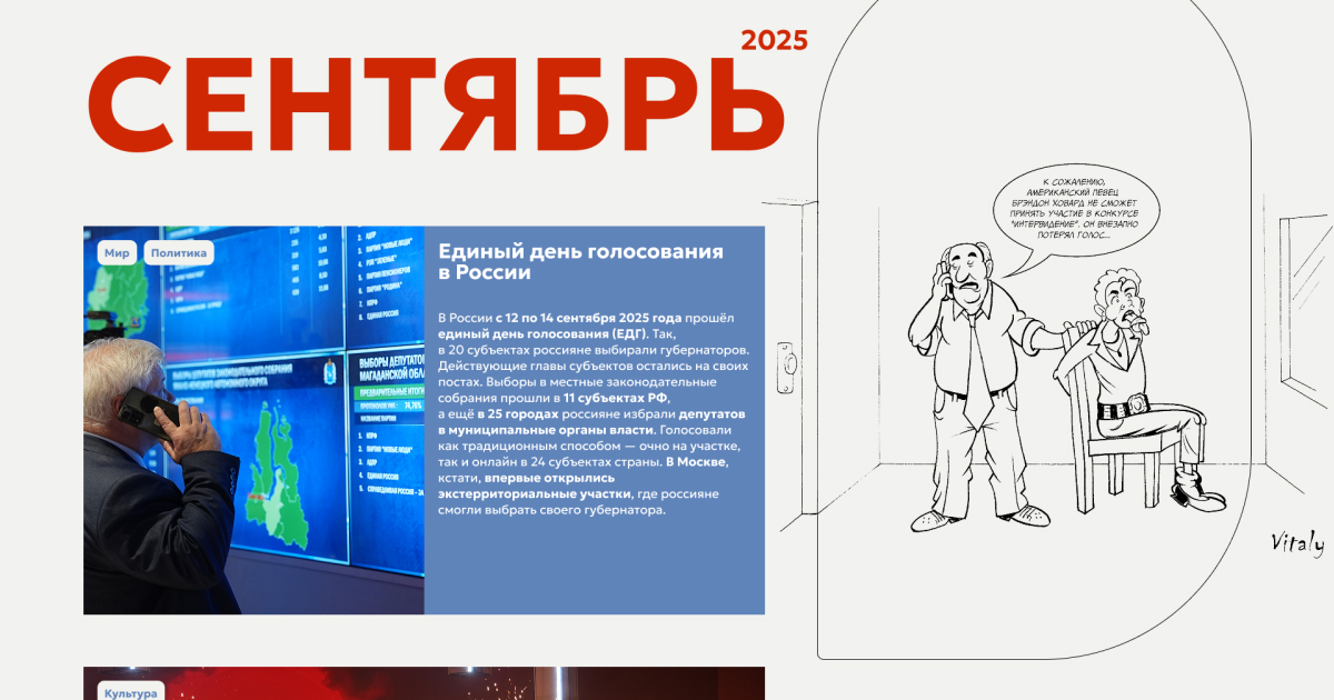 В России с 12 по 14 сентября 2025 года прошёл единый день голосования (ЕДГ). Так, в 20 субъектах россияне выбирали губернаторов. Действующие главы субъектов остались на своих постах. Выборы в местные законодательные собрания прошли в 11 субъектах РФ, а ещё в 25 городах россияне избрали депутатов в муниципальные органы власти. Голосовали как традиционным способом — очно на участке, так и онлайн в 24 субъектах страны. В Москве, кстати, впервые открылись экстерриториальные участки, где россияне смогли выбрать своего губернатора.